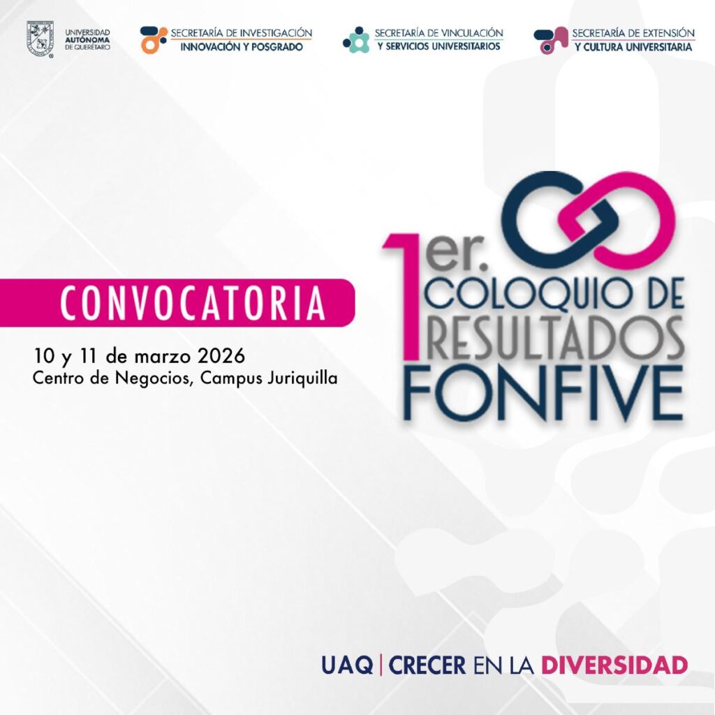 El Primer Coloquio de Resultados de la Convocatoria FONFIVE-UAQ 2024 se concibe como un espacio académico para la socialización de los resultados, avances y experiencias derivadas de los proyectos apoyados por este Fondo.